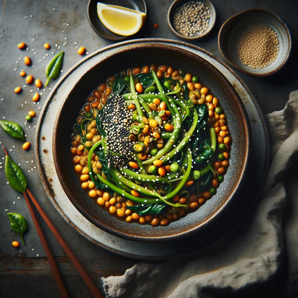 Gochujang Chickpea and Chayote Stir-fry with Perilla Ginger Dressing