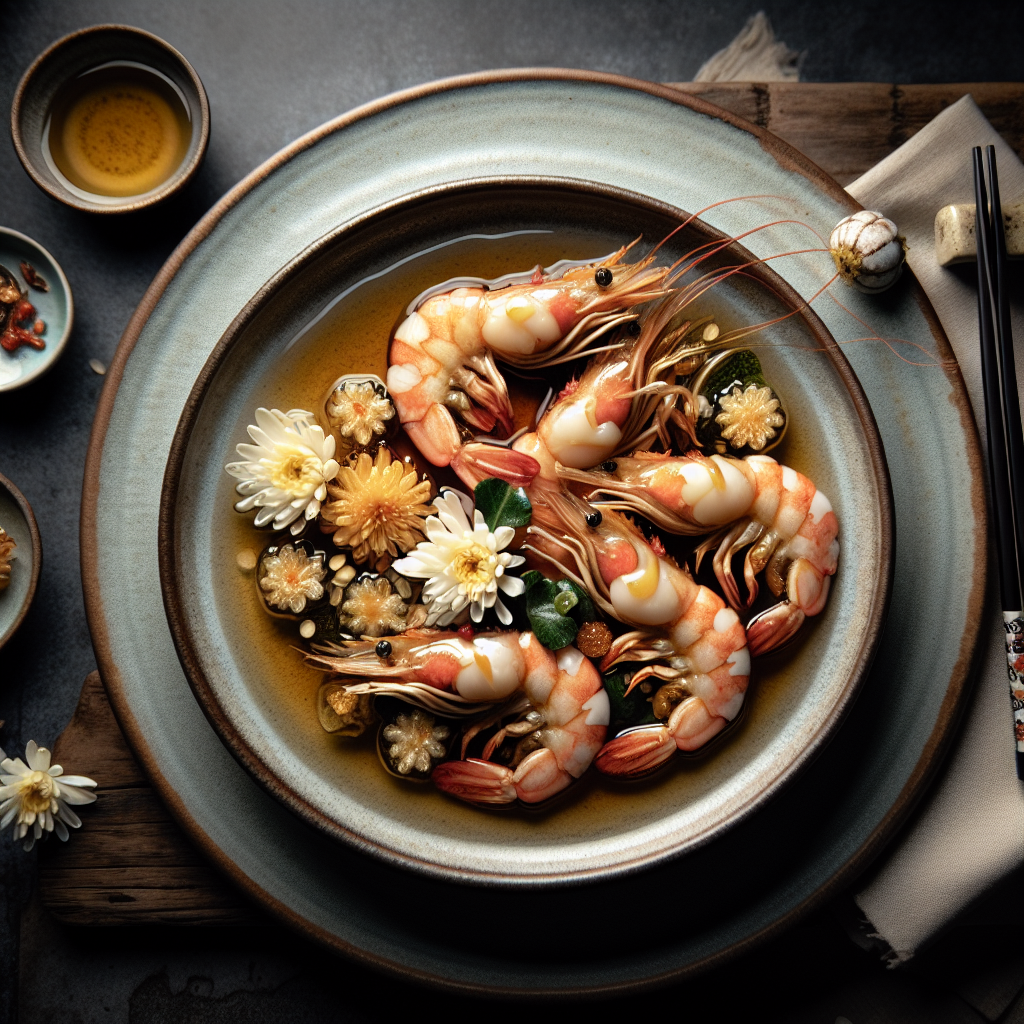 Osmanthus-Infused Halal Lobster with Lychee and Ginger Essence is a captivating Chinese dish that combines the delicate sweetness of lychee with the aromatic allure of