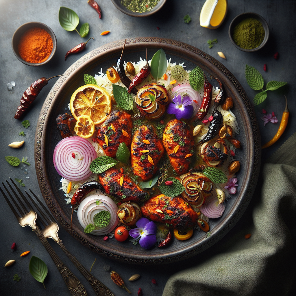 Kesar Tulsi Anjeer Murgh Tikka is a delightful Indian dish that marries the rich flavors of saffron (kesar), holy basil (tulsi), and figs (anjeer) with