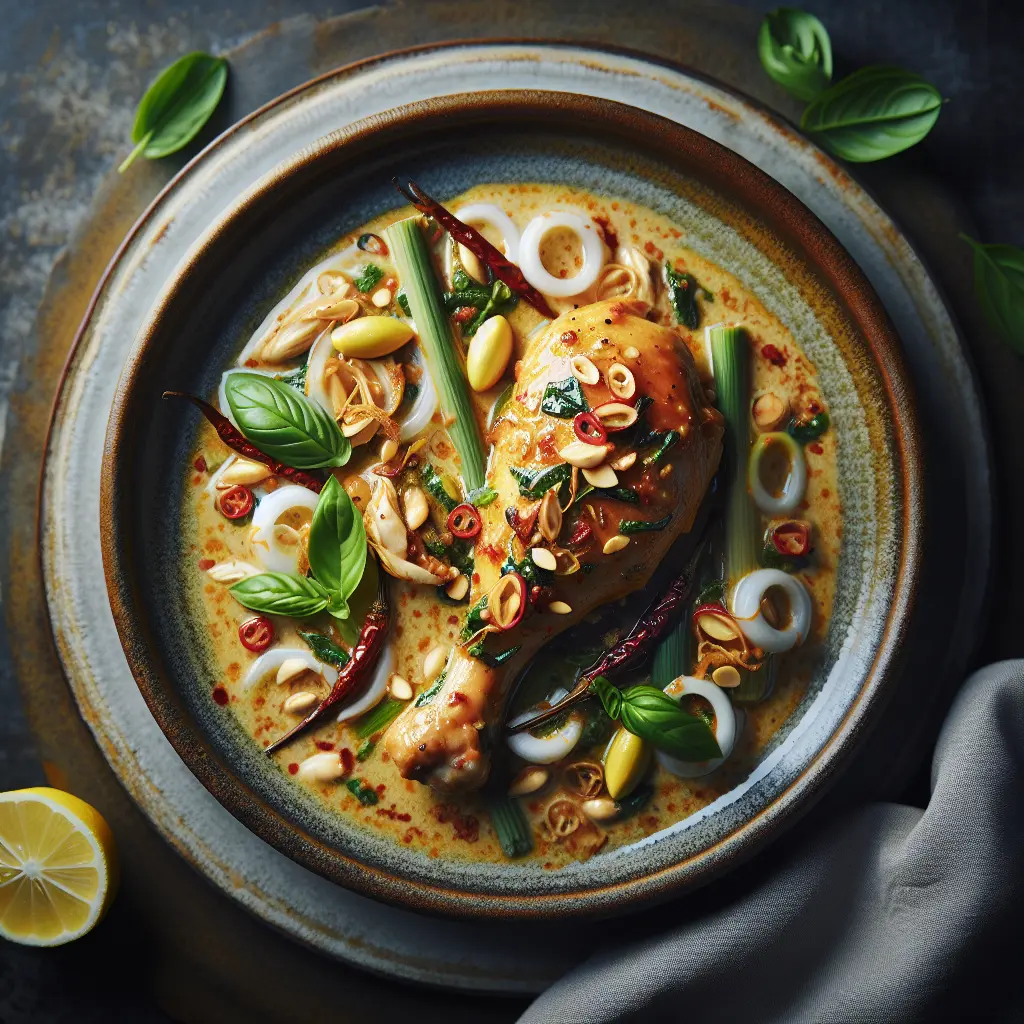 Lemongrass Coconut Chicken with Thai Basil and Mango Curry is a delightful Thai dish celebrated for its vibrant flavors and aromatic ingredients. This dish combines