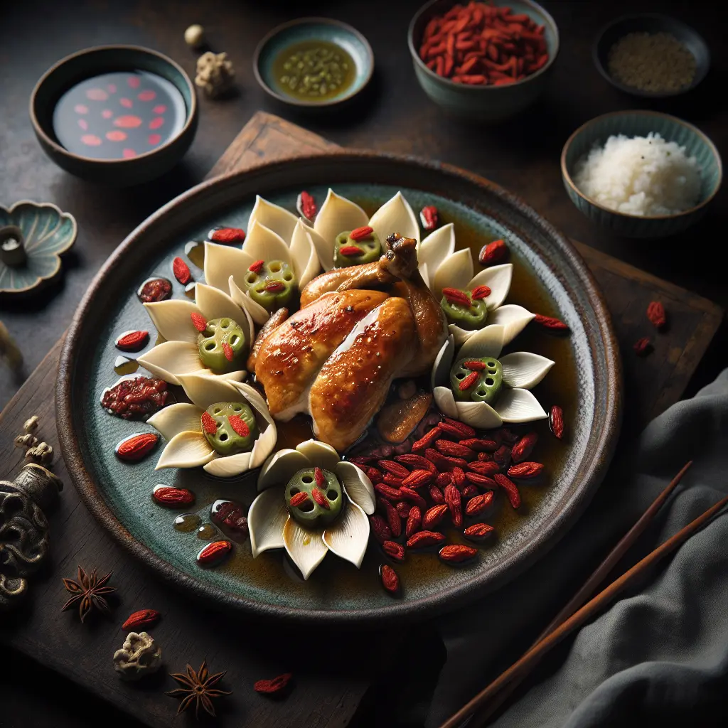 Explore the delicate flavors of Magnolia Blossom-Infused Halal Bass with Goji Berry and Ginger Essence, a dish that celebrates the harmony of traditional Chinese ingredients.