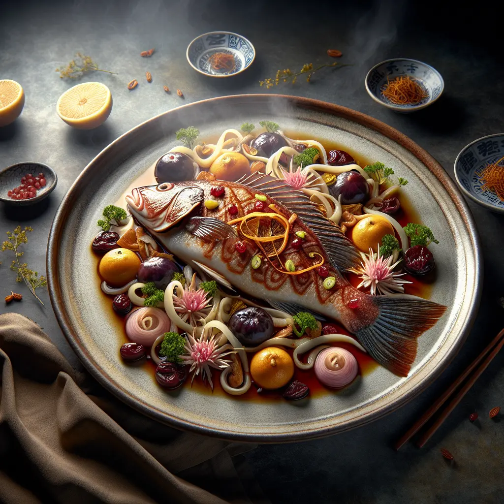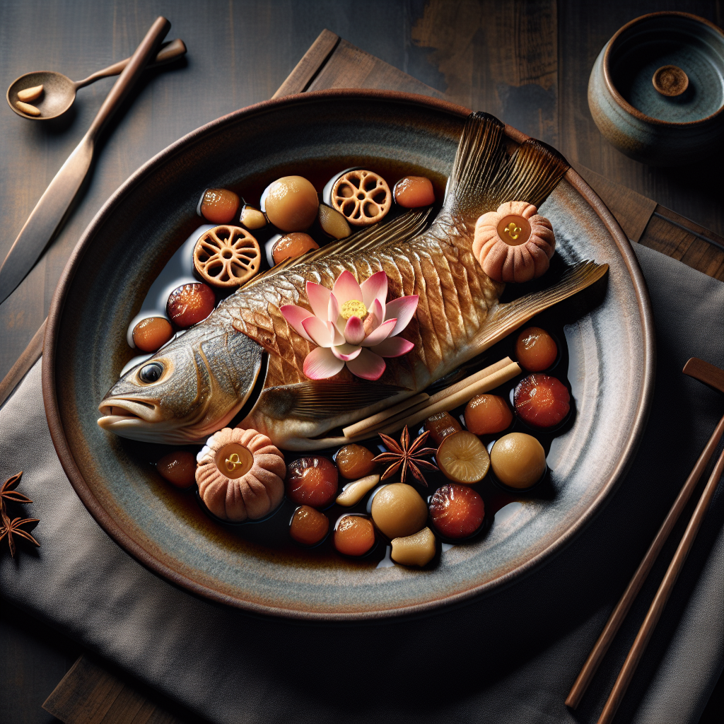 Peony Blossom-Infused Halal Chicken with Star Anise and Lychee Essence is a delicate Chinese dish that combines aromatic and floral flavors. The infusion of peony