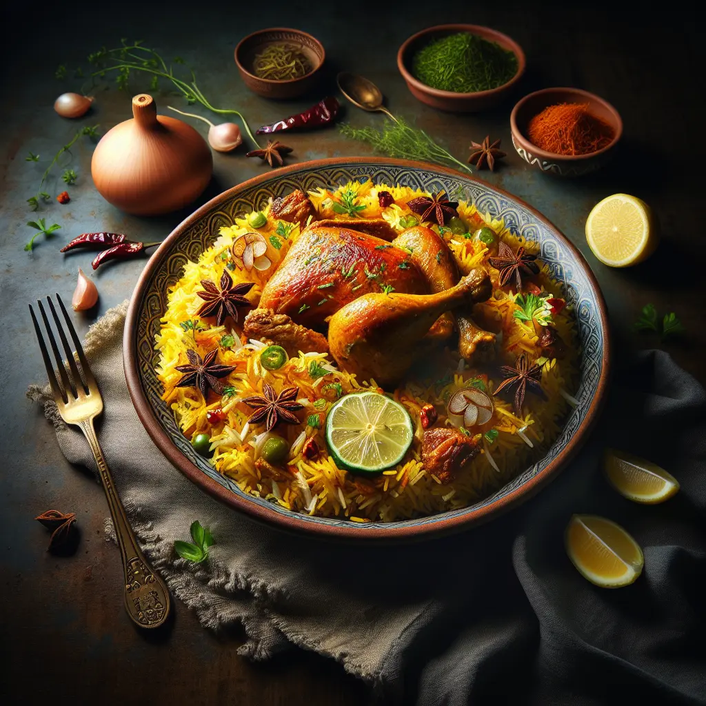Kesar Khus Murgh Biryani is a regal Indian dish that harmoniously blends aromatic basmati rice with succulent chicken marinated in a rich concoction of saffron