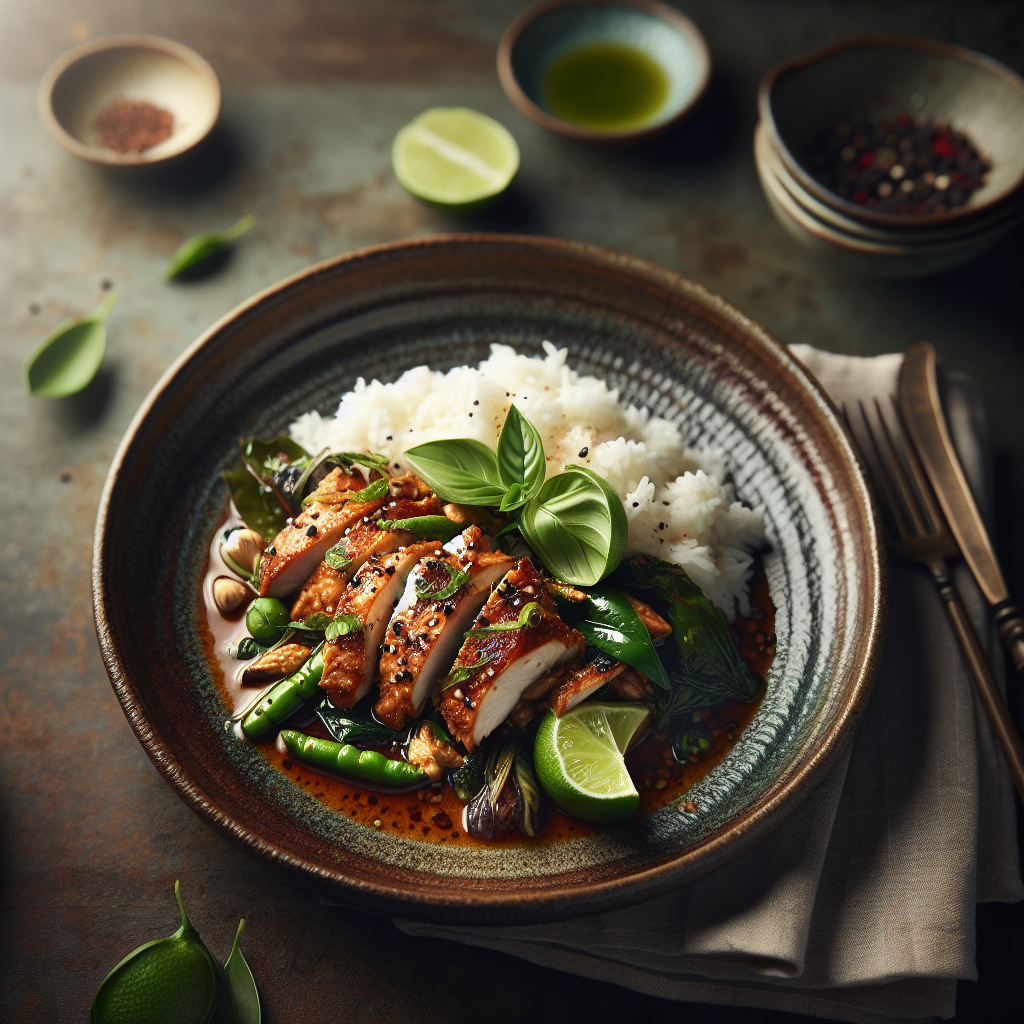 Tamarind Lime Chicken with Thai Basil and Coconut Sauce is a delightful fusion of tangy, sweet, and savory flavors that epitomizes Thai cuisine. This dish