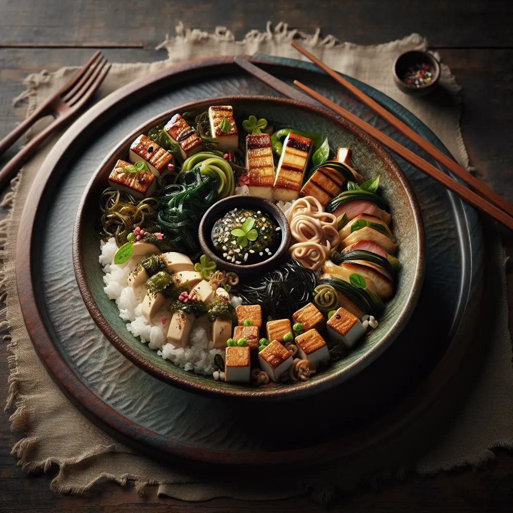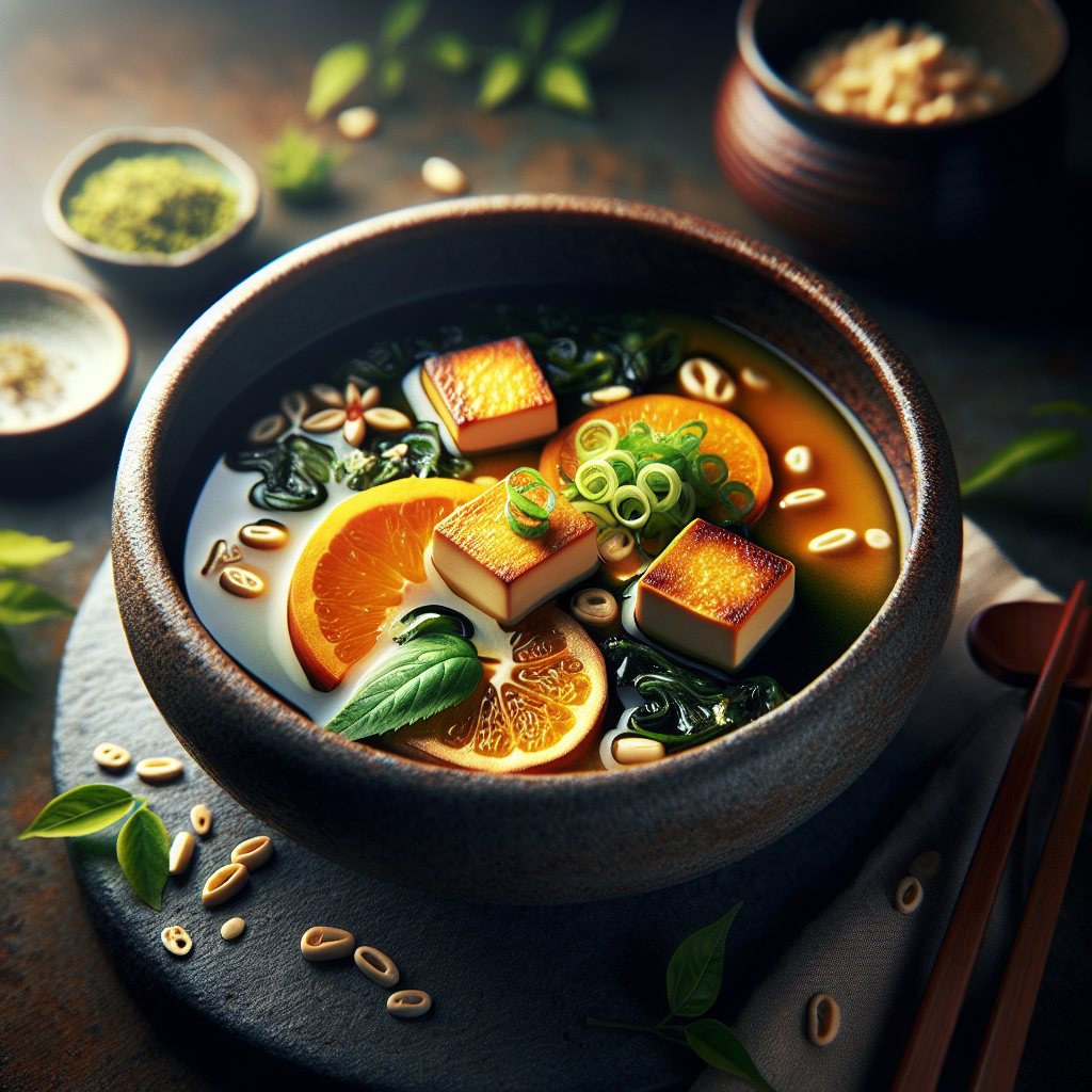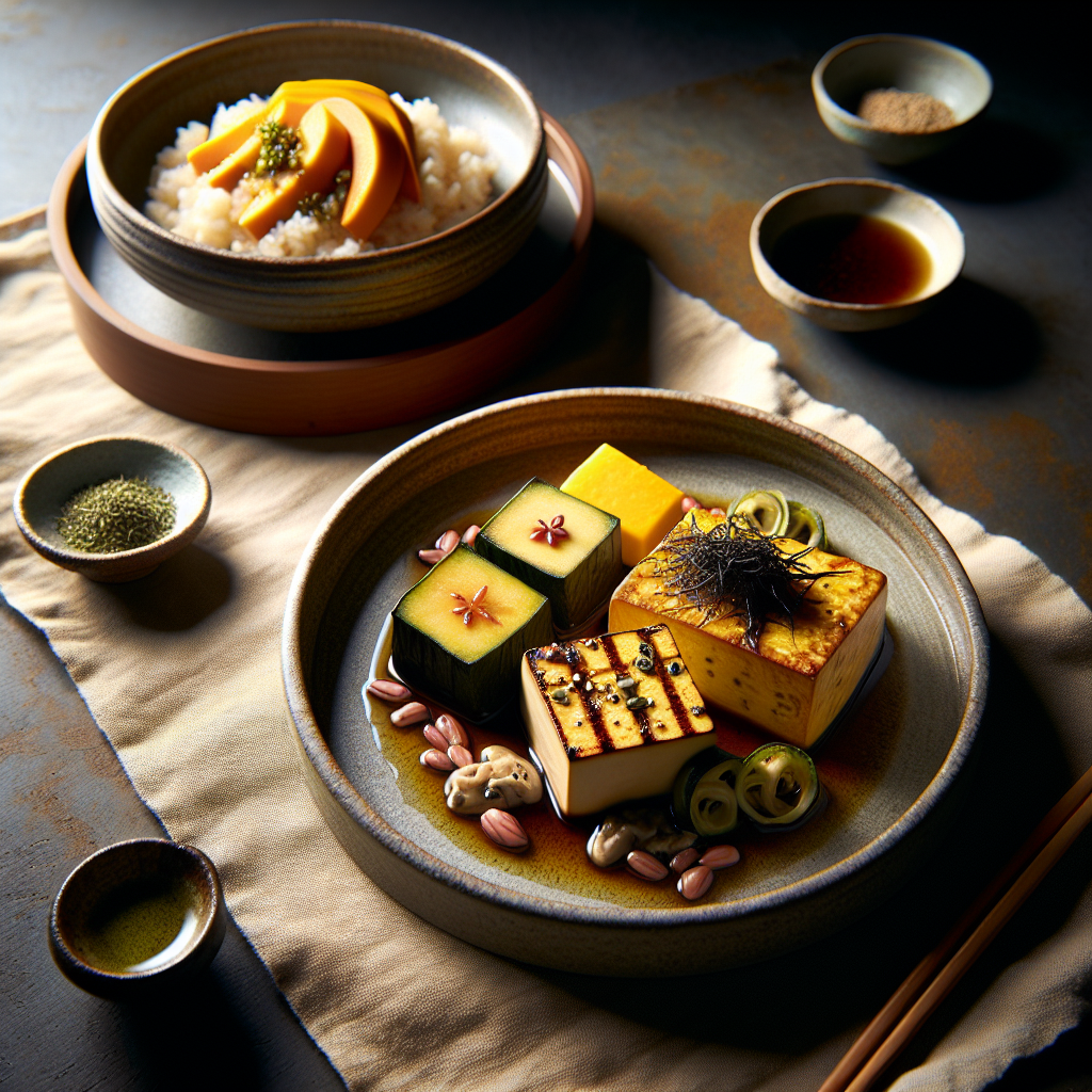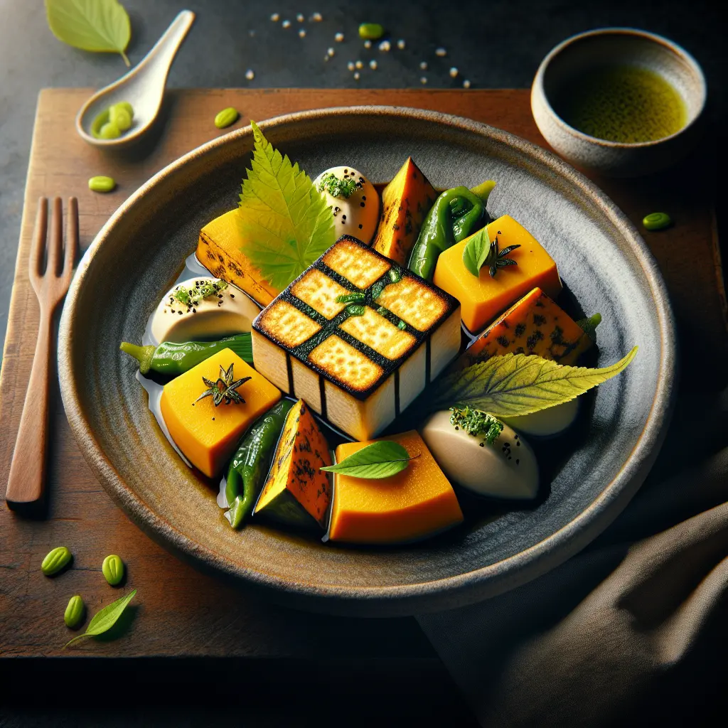 Yuzu Shiso Tofu Nori Temaki with Edamame Wasabi Cream is a delightful Japanese-inspired dish that combines the refreshing citrusy notes of yuzu with the aromatic,