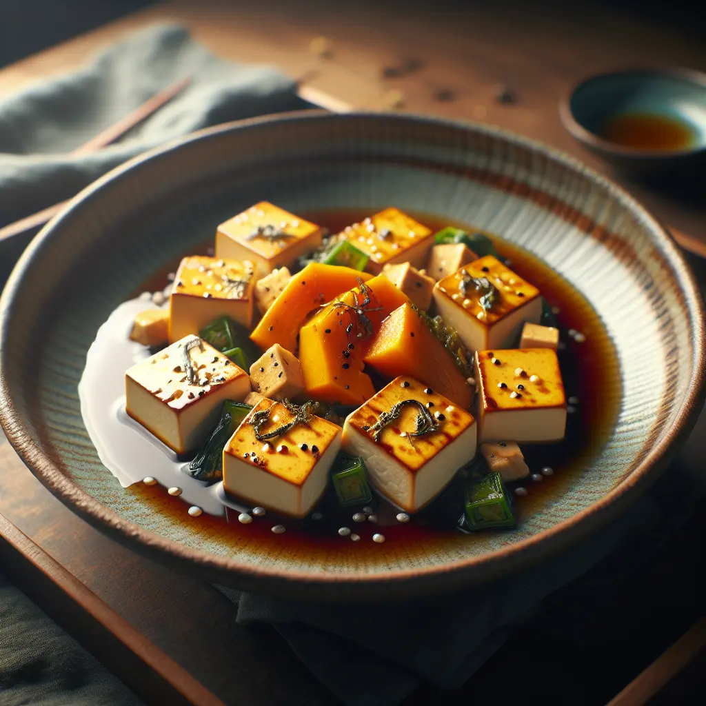 Yuzu Shiso Tofu Kabocha Miso Yaki is a delightful blend of Japanese flavors that brings together the citrusy notes of yuzu, the earthy aroma of