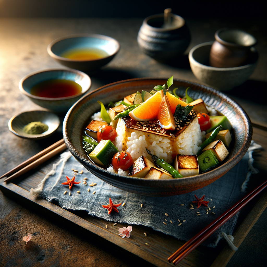 Yuzu Shiso Tofu Kinpira Donburi is a delightful fusion of traditional Japanese flavors. This dish combines the tangy zest of yuzu with the aromatic freshness