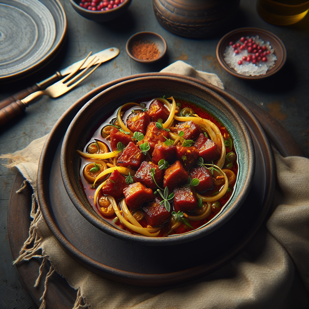 Aam Tel Mangsho is a traditional Bangladeshi dish that combines succulent pieces of mutton with the tangy flavor of raw mangoes, creating a unique and flavorful curry. Originating from the rich culinary heritage of Bangladesh, this dish is adored for its perfect balance of spicy, sour, and savory notes. The key ingredients include mutton, raw mango, mustard oil, and a blend of aromatic spices such as cumin, coriander, and turmeric. This dish is often enjoyed during special occasions and family gatherings, as it offers a delightful and hearty meal that satisfies the taste buds. The tender mutton absorbs the zesty mango essence, making it a beloved choice for those who appreciate bold and vibrant flavors.
