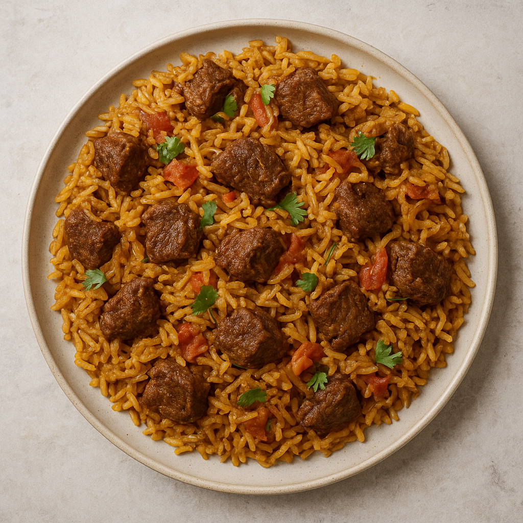 Once done, fluff the rice with a fork and serve hot with salad or yogurt.