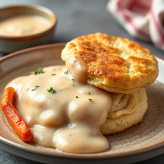 Biscuits and Gravy is a classic Southern breakfast dish featuring soft, fluffy biscuits smothered in rich, savory sausage gravy. This recipe focuses on creating tender homemade biscuits and a creamy, flavorful gravy using simple ingredients like flour, milk, butter, and sausage. The combination of warm biscuits and hearty gravy provides a comforting and filling breakfast experience. Ideal for brunch or weekend mornings, this dish pairs well with eggs or fresh fruit on the side. Easy to prepare at home, Biscuits and Gravy offer a satisfying, protein rich meal that showcases traditional Southern flavors and textures.