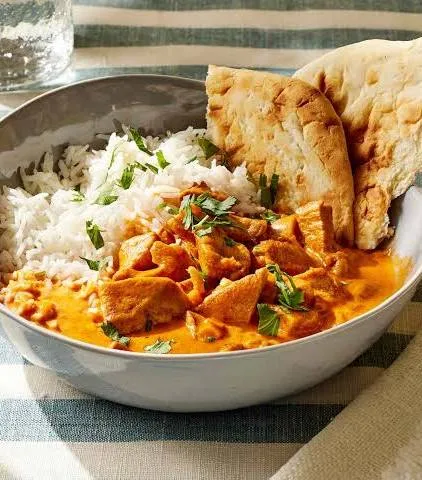 Butter Chicken is a rich and creamy North Indian dish featuring tender chicken simmered in a mildly spiced tomato-based sauce. It’s a popular comfort food enjoyed with Rice or Naan. The balance of butter, cream, and aromatic spices creates a smooth, flavorful curry that’s both satisfying and indulgent, perfect for family dinners or festive meals. This dish showcases the warmth of Indian spices with a subtle sweetness that appeals to all age groups.
