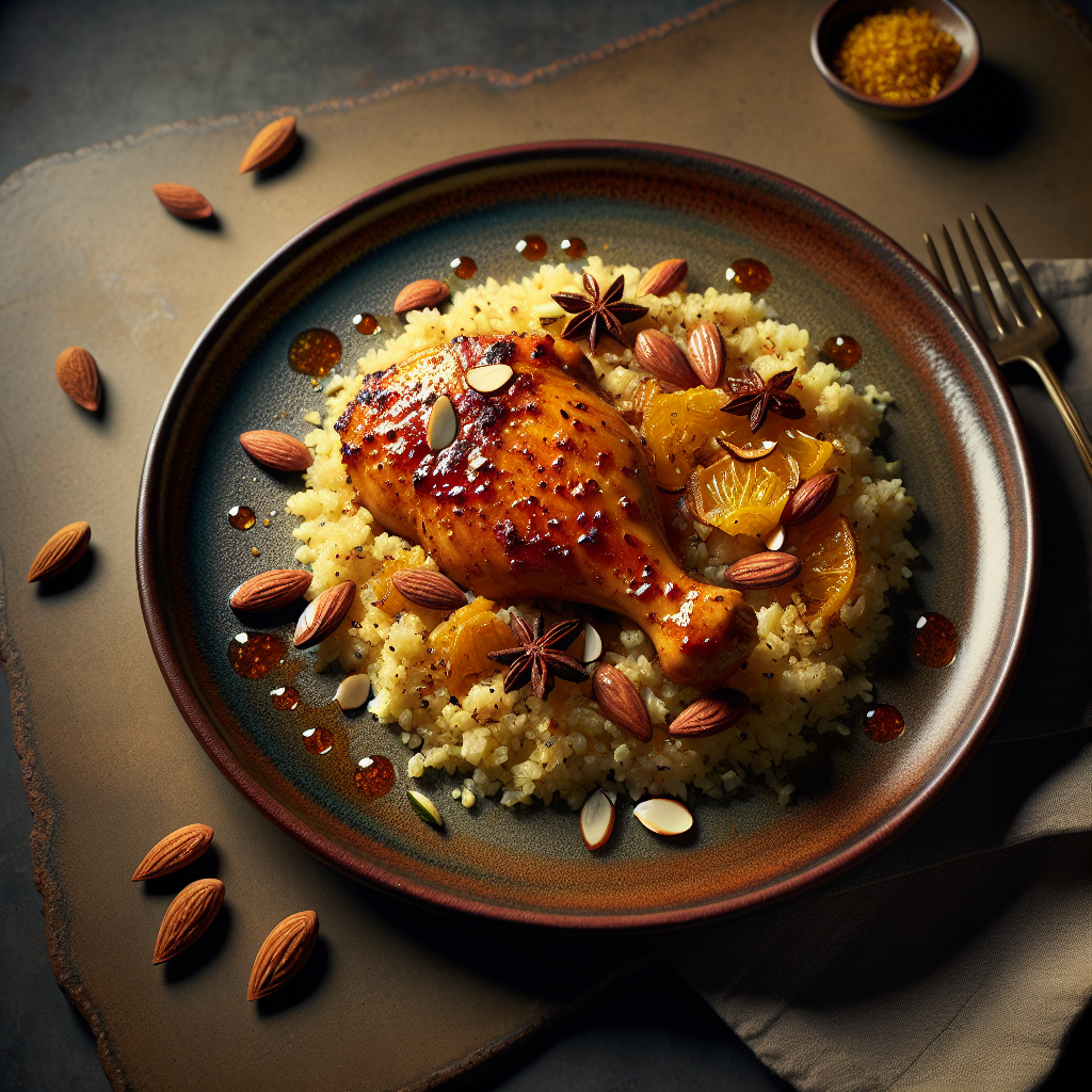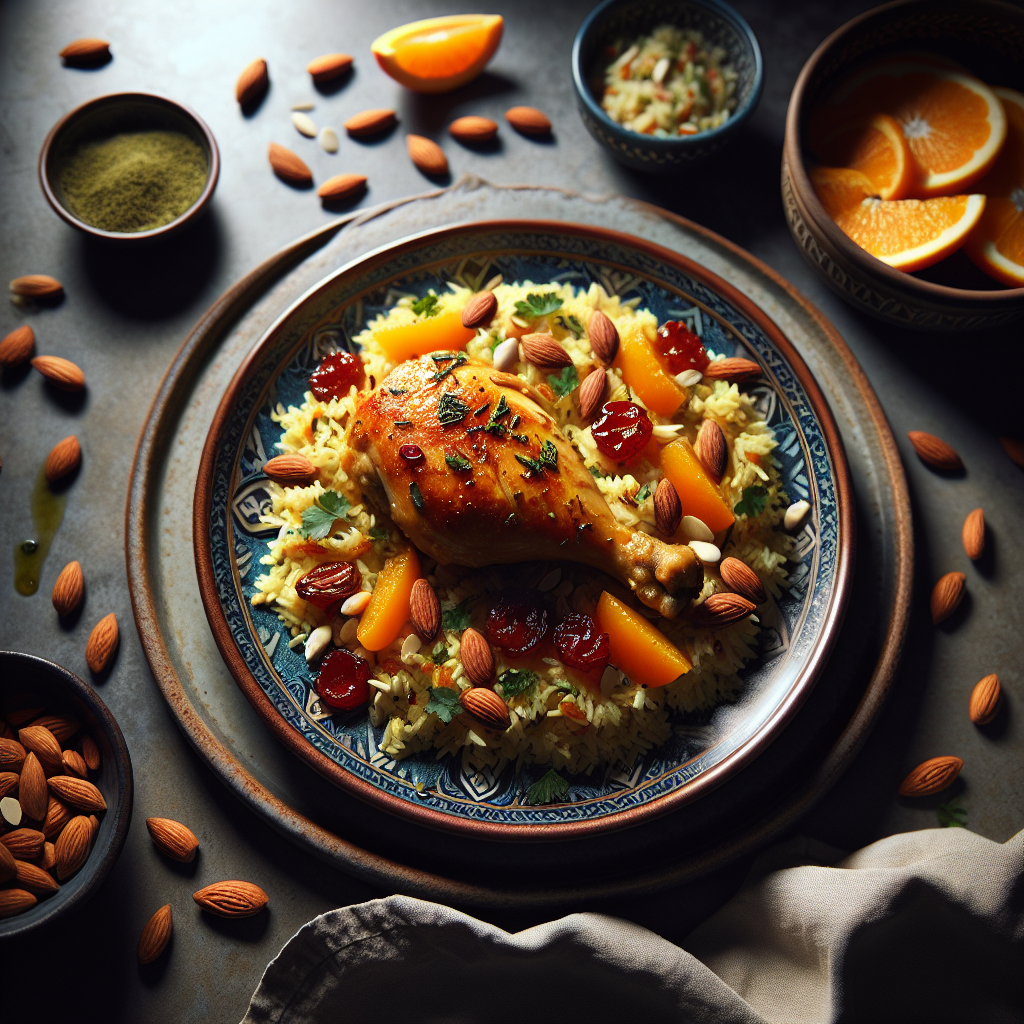 Cardamom & Apricot Chicken with Almond Pilaf is a delightful fusion of aromatic spices and sweet fruitiness, offering a unique taste experience. The dish showcases the warmth of cardamom, the subtle sweetness of apricots, and the nutty crunch of almonds, all melding together with tender chicken. Originating from Middle Eastern and South Asian culinary traditions, it is loved for its rich flavors and fragrant aroma. The chicken is marinated with spices and cooked to perfection, while the pilaf is infused with almonds, providing a satisfying crunch. This combination creates a balanced meal that is both nourishing and exotic, making it a favorite choice for lunch gatherings. With its appealing look and delightful taste, this dish is both comforting and impressive, perfect for those who enjoy exploring diverse culinary landscapes.