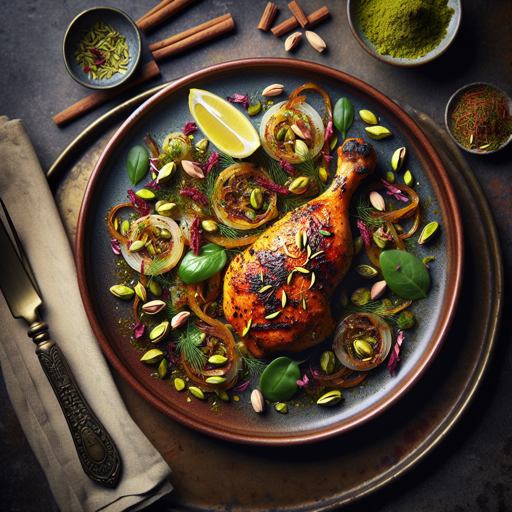 Cardamom & Rosewater Grilled Chicken with Pistachio Fennel Salad is a delightful fusion of Persian and Mediterranean flavors, perfect for a refreshing and aromatic lunch. This dish features tender chicken marinated in a fragrant blend of cardamom, rosewater, and lemon, resulting in a succulent, juicy bite with a subtly sweet aroma. Paired with a crisp salad of fennel, pistachios, and a hint of citrus, it offers a balance of textures and flavors. The salad provides a nutty crunch and a slight anise-like note from the fennel, complementing the savory grilled chicken. Loved for its unique and sophisticated taste, this dish is a perfect choice for those seeking an exotic culinary experience.