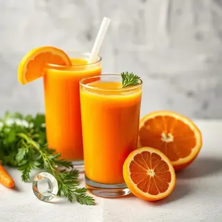 A refreshing and healthy juice combining the natural sweetness of carrots with the tangy zest of oranges. Perfect for breakfast or as an energizing drink during the day, this juice is packed with vitamins, antioxidants, and minerals that boost immunity, improve digestion, and enhance overall wellness. Simple to prepare and delicious to enjoy daily.