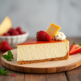 This classic Cheesecake features a creamy, smooth filling on a buttery, crisp crust. Rich in flavor yet delicate in texture, it is perfect for desserts at family gatherings or special occasions. The subtle tang of cream cheese complements the sweetness, creating a balanced and indulgent treat that melts in your mouth.