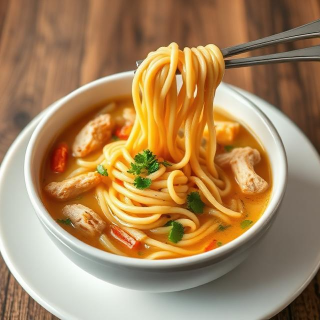 Chicken Noodle Soup is a classic comfort dish loved for its soothing warmth and nourishing simplicity. Prepared with tender chicken pieces, egg noodles, carrots, celery, and onions simmered slowly in a flavorful chicken broth, this soup is both hearty and light. Known for its restorative qualities, it is often enjoyed during cold weather or when feeling under the weather. Its clean, savory taste and wholesome ingredients make it a timeless staple in home kitchens around the world.