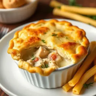 Chicken Pot Pie is a comforting and hearty dish featuring tender chicken pieces cooked with vegetables in a creamy sauce, all encased in a golden, flaky crust. Perfect for family dinners or special occasions, this recipe combines rich flavors and textures that satisfy the palate and warm the soul. Easy to make and incredibly satisfying, it brings a classic home-cooked feel to any meal, ensuring both children and adults enjoy every bite while offering a balanced combination of protein, vegetables, and carbohydrates in one delicious serving.