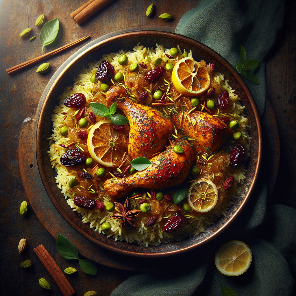 Cinnamon-Saffron Chicken with Pistachio Raisin Pilaf is a delightful fusion of Middle Eastern and South Asian flavors, combining aromatic spices with succulent chicken and a fragrant rice pilaf. The chicken is marinated with cinnamon and saffron, giving it a warm, inviting aroma and a beautiful golden color. This dish is complemented by a pilaf enriched with crunchy pistachios and sweet raisins, providing a pleasing contrast of textures and tastes. The use of saffron adds a luxurious touch, elevating the dish to a special occasion meal. This recipe is loved for its depth of flavor and the harmony of spices that create an unforgettable dining experience. It’s perfect for family gatherings or dinner parties, offering a taste of exotic cuisine that is both satisfying and memorable.