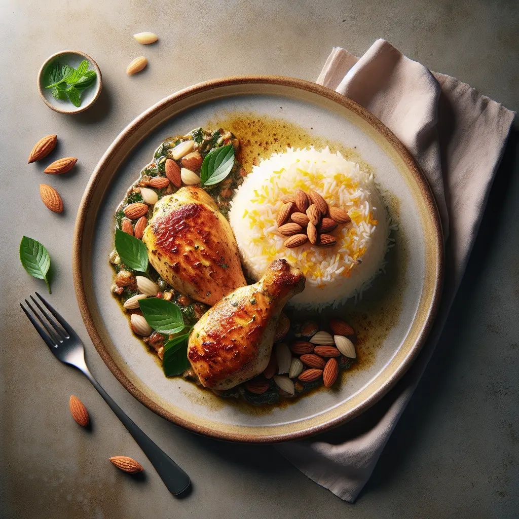 Persian Herb Chicken with Almond Rice is a delightful dish....
