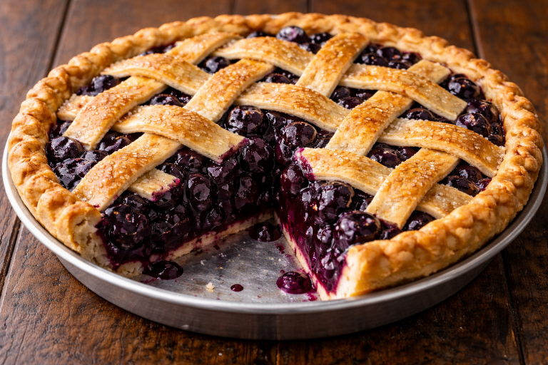 This classic blueberry pie features a sweet, juicy blueberry filling nestled inside a golden, flaky crust. The natural tartness of the berries is balanced with sugar, creating a delightful dessert perfect for family gatherings, summer picnics, or cozy evenings at home. Serve warm or chilled, optionally with a scoop of vanilla ice cream.