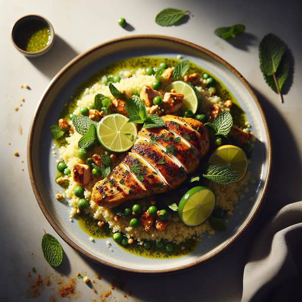 Coriander-Lime Chicken with Mint Couscous is a delightful fusion dish....
