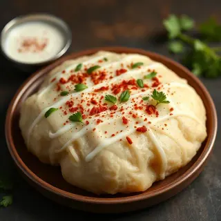 Dahi Puri is a popular Indian street food known for its burst of flavors. Crisp puris are filled with spiced potatoes, tangy tamarind chutney, and creamy yogurt. Garnished with fresh coriander, sev, and spices, it offers a perfect balance of sweet, tangy, and savory taste. Ideal as a snack or appetizer for gatherings, this dish is easy to prepare and loved by all age groups. The combination of textures and flavors makes every bite delightful, providing a refreshing and appetizing experience that captures the essence of Indian cuisine. Enjoy it fresh for maximum crunch and flavor impact.