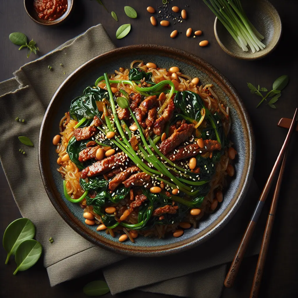 Gochujang Black Bean and Spinach Bibimbap is a delightful fusion....