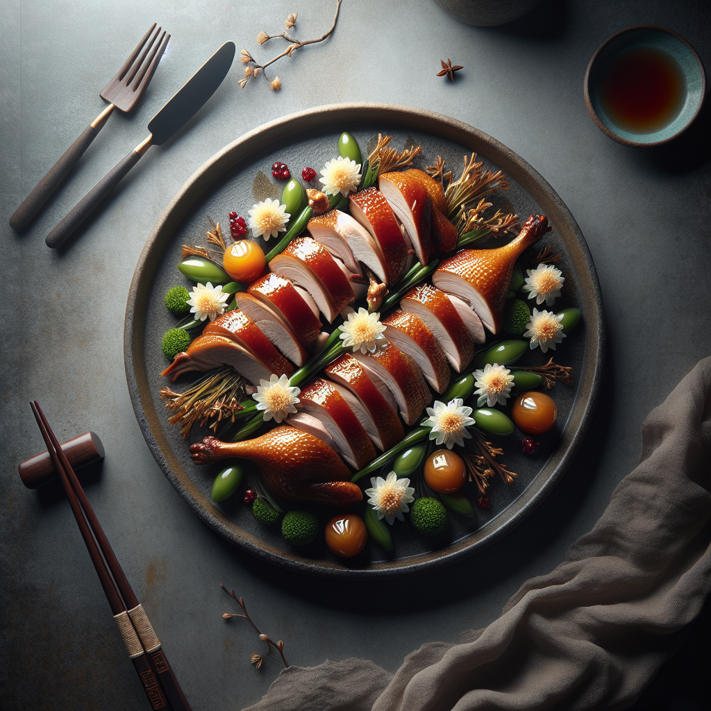Chrysanthemum-Infused Halal Duck with Osmanthus and Lychee Essence is a....