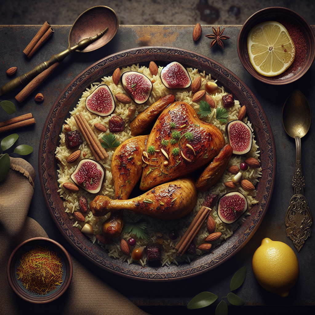 Cinnamon-Rosewater Chicken with Almond Fig Pilaf is a delightful fusion....