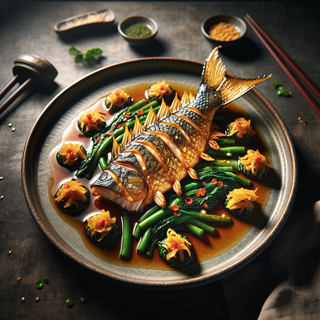 Dragon Well Tea-Infused Halal Fish with Pickled Mustard Greens is a delightful Chinese dish that combines the subtle, aromatic flavor of Dragon Well tea with tender, flaky fish. Originating from the Zhejiang province, this dish showcases the region’s love for tea and fresh seafood. The tea imparts a slightly sweet, nutty flavor to the fish, while the pickled mustard greens add a tangy contrast, creating a harmonious balance of tastes. This dish is cherished for its unique fusion of flavors and its light, refreshing taste profile. It’s a perfect choice for those who enjoy a fresh take on traditional Chinese cuisine, offering a taste experience that is both comforting and exotic.