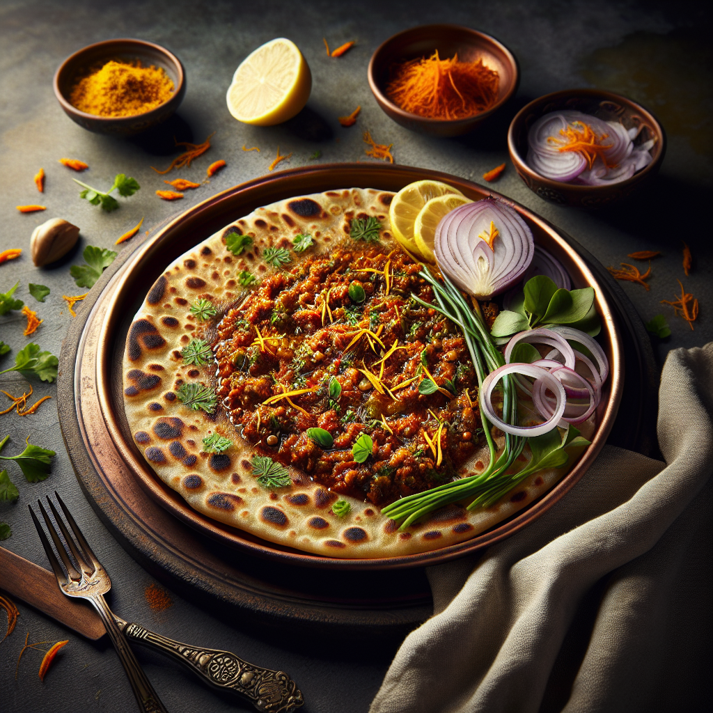 Dum Keema Methi Paratha is a delightful fusion of flavors, originating from the Indian subcontinent, known for its rich and aromatic profile. This dish combines the savory taste of spiced minced meat (keema) with the distinct aroma of fenugreek leaves (methi), all enveloped in a crispy, flaky paratha. The keema is slow-cooked (dum) with a blend of spices, allowing the flavors to meld together perfectly. The addition of methi not only enhances the taste but also adds a nutritious touch to the dish. People love Dum Keema Methi Paratha for its balanced taste, where the heat of the spices is complemented by the earthy notes of methi, providing a wholesome and satisfying meal. It is often enjoyed with plain yogurt or pickles, making it a popular choice for breakfast or brunch.