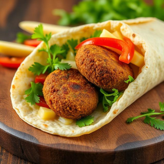 Falafel Wrap is a flavorful and wholesome dish featuring crispy falafel balls wrapped in soft flatbread with fresh vegetables and a creamy sauce. This recipe combines simple ingredients to create a balanced, satisfying meal ideal for lunch, dinner, or on-the-go eating. The crispy exterior of the falafel contrasts perfectly with the soft wrap and crunchy vegetables, delivering a delightful texture in every bite. Easy to prepare and packed with plant-based protein and fiber, Falafel Wrap is both nutritious and delicious. It can be customized with sauces, herbs, or pickles to suit personal taste, making it a versatile choice for casual and healthy meals.