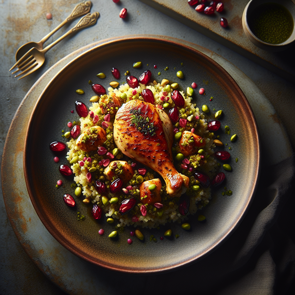 Saffron-Pistachio Chicken with Cranberry Mint Bulgur is a delightful fusion....