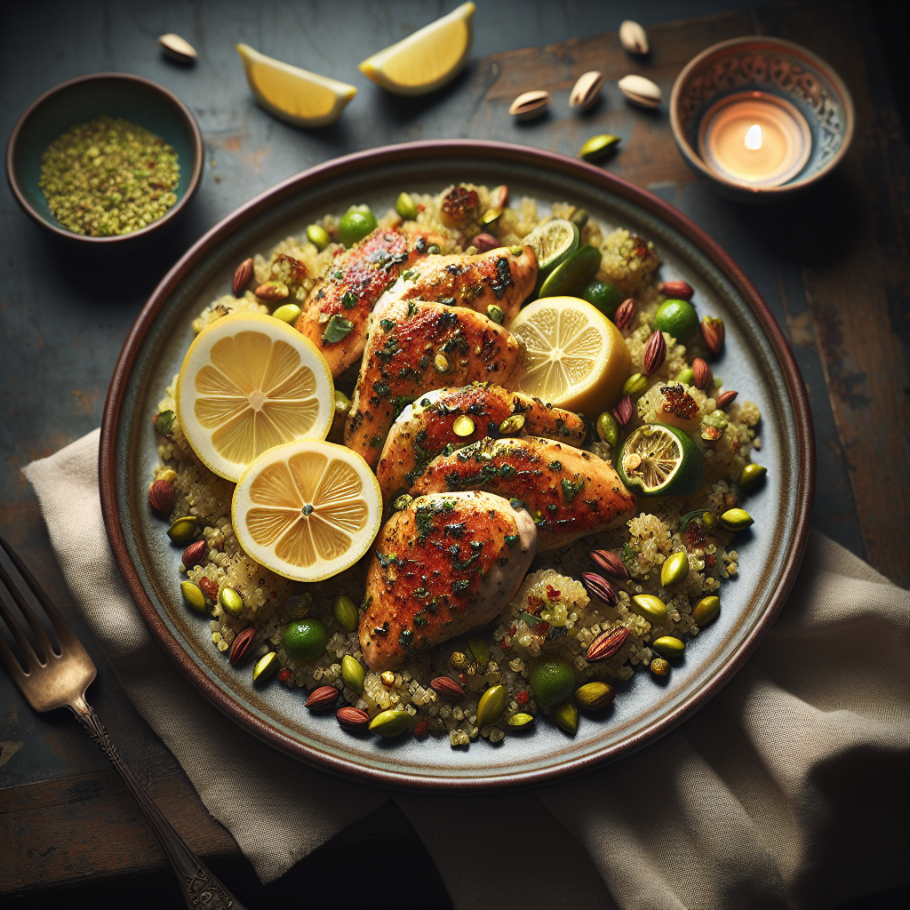 Saffron-Infused Chicken with Pistachio Rosewater Pilaf is a luxurious dish....