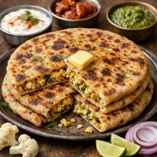 Gobi Paratha with yogurt and chutney is a comforting Indian flatbread meal built around a spiced cauliflower filling wrapped in soft wheat dough. The paratha cooks on a hot pan until crisp outside and tender within, creating layers of flavor and texture. Served with cooling yogurt and tangy chutney, it balances warmth, freshness, and gentle heat in every bite. This recipe keeps ingredients simple while focusing on careful preparation, even stuffing, and controlled cooking for consistent results. Ideal for breakfast, brunch, or a light dinner, it delivers satisfying nourishment, approachable technique, and a versatile base that pairs beautifully with classic accompaniments for a wholesome, everyday meal.
