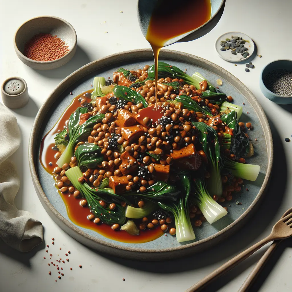 Gochujang Lentil Bok Choy Stir-fry is a vibrant and spicy dish that beautifully blends Korean flavors with wholesome ingredients. Originating from Korean cuisine, this stir-fry features tender lentils and crisp bok choy, coated in a savory gochujang sauce, which is a staple Korean fermented chili paste known for its sweet and spicy profile. The dish is a delightful balance of textures and flavors, with the nutty lentils complementing the fresh bok choy. It’s loved for its bold taste, nutritious value, and its quick preparation time, making it a perfect choice for a healthy weeknight dinner or a flavorful side dish. Enjoy the harmonious play of spicy, sweet, and umami notes in every bite.