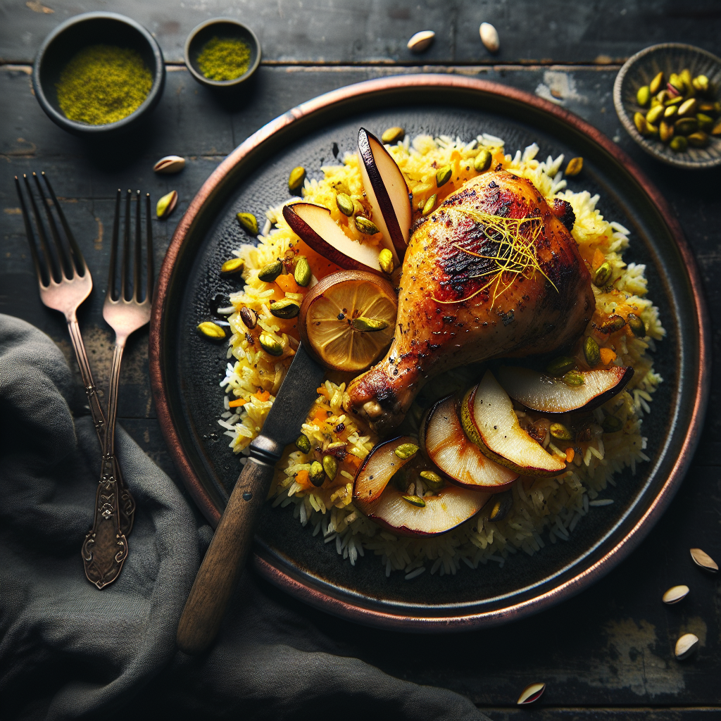 Persian Lime-Pistachio Chicken with Saffron Rice is a delightful fusion....