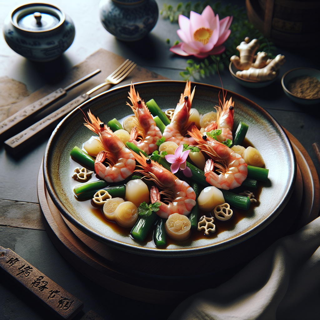 Jasmine Blossom-Infused Halal Shrimp with Lotus Seed and Ginger Essence is a delightful dish that combines the fragrant aroma of jasmine blossoms with the succulent sweetness of shrimp. Originating from the rich culinary traditions of Chinese cuisine, this dish is celebrated for its balance of delicate flavors and textures. The shrimp, marinated with ginger essence, brings a subtle warmth, while the lotus seeds add a unique nutty crunch. This dish is not only visually appealing, with its vibrant colors and floral accents, but also a treat for the taste buds. Loved by many for its aromatic profile and the harmonious blend of ingredients, it is often enjoyed as a special occasion meal that leaves a lasting impression.