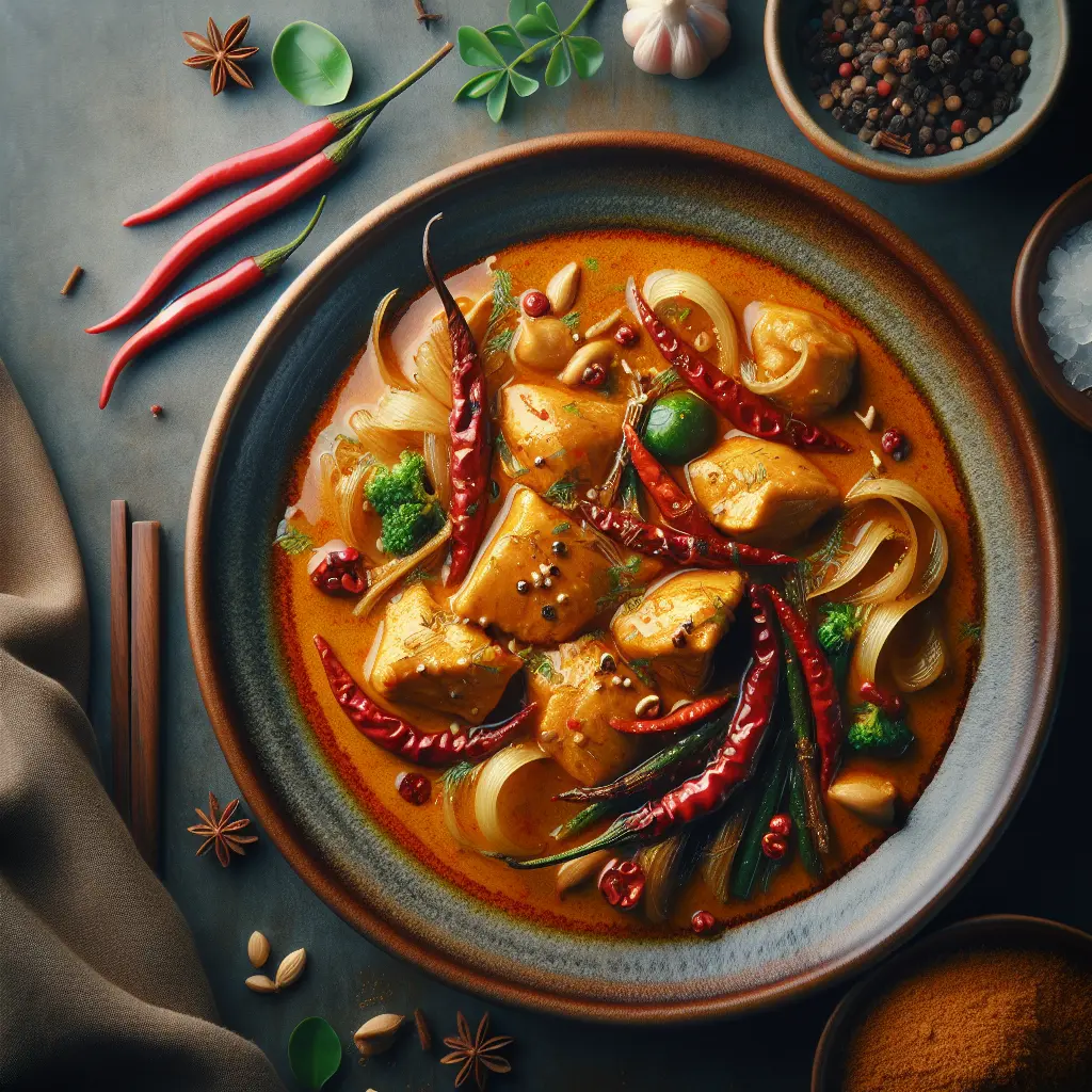 Kesar Anardana Murgh is a delightful Indian dish that combines the rich flavors of saffron (kesar) and dried pomegranate seeds (anardana) with succulent chicken. This dish is known for its aromatic and tangy taste profile, where the saffron adds a luxurious touch, and the anardana imparts a subtle sourness. The chicken is cooked in a rich, spiced gravy that is both creamy and slightly spicy, making it a favorite among those who enjoy a balance of flavors. This dish is often served during special occasions and is loved for its unique combination of ingredients that create a memorable culinary experience.