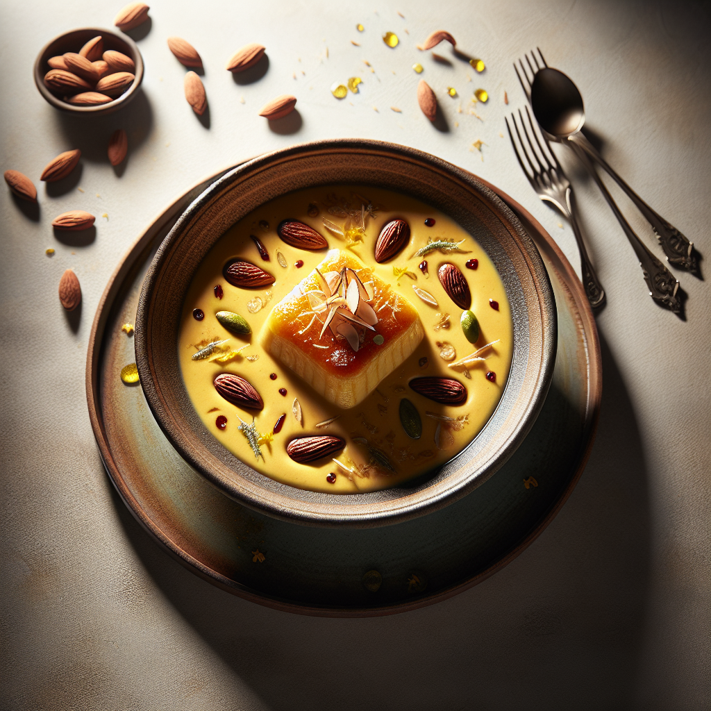 Kesar Badam Shahi Tukda is a sumptuous Indian dessert that hails from the Mughlai cuisine. This rich and creamy dish is a delightful combination of fried bread slices soaked in saffron-infused milk, garnished with almonds and cardamom. The bread slices are fried to a golden brown, giving a crispy texture that beautifully contrasts with the smoothness of the milk. The addition of saffron and almonds provides a luxurious aroma and flavor, making it a perfect indulgence for festive occasions. Loved for its decadent taste and royal presentation, this dessert is sure to win the hearts of those who try it.