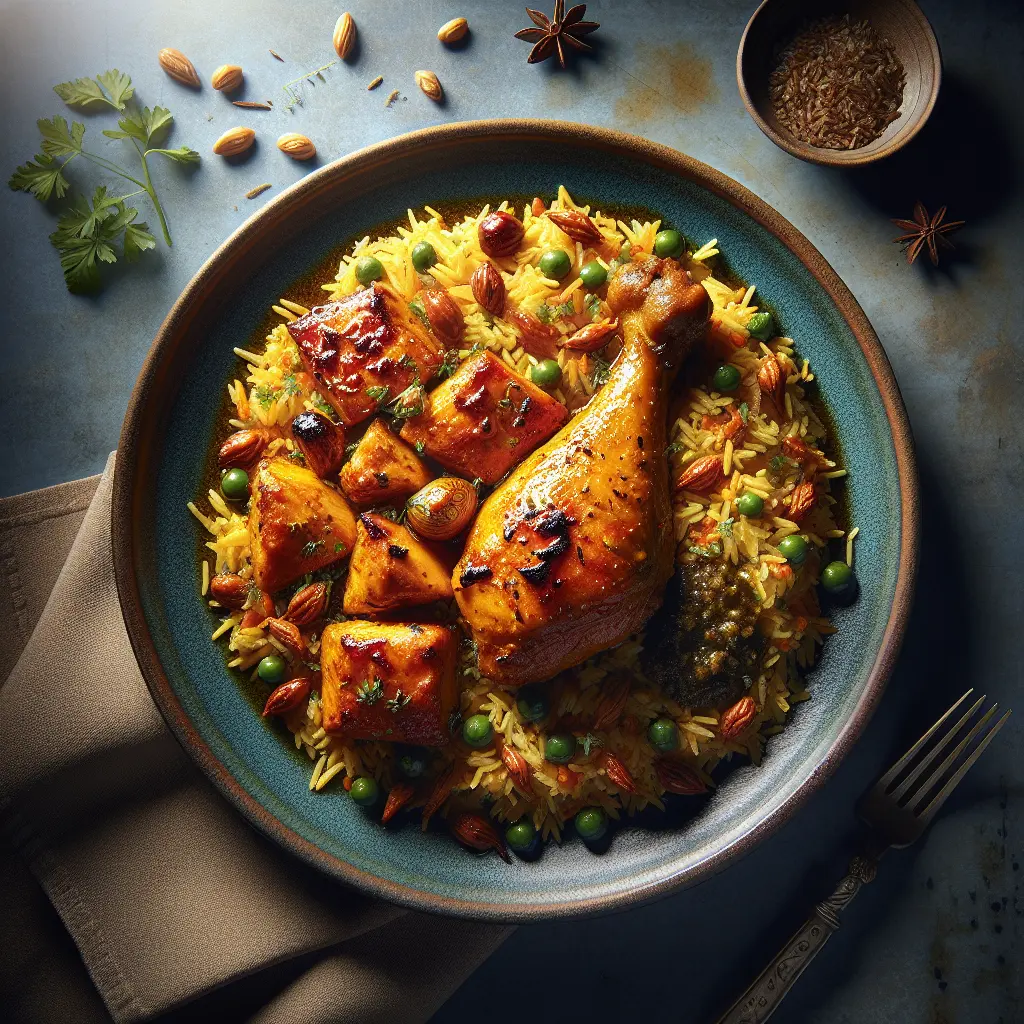Kesar Pudina Murgh Pulao is a delightful Indian dish that combines aromatic basmati rice, tender chicken, and a blend of spices. The saffron (kesar) adds a luxurious touch with its unique flavor and golden hue, while mint (pudina) offers a refreshing twist. This pulao is a savory treat loved for its rich taste and fragrant aroma. The dish is perfect for festive occasions and family gatherings, where its vibrant colors and flavors make it a centerpiece. With each bite, experience a harmonious balance of spices and herbs, making it a favorite among Indian cuisine enthusiasts. Its preparation involves marinating chicken in yogurt and spices, resulting in a flavorful and juicy delight.