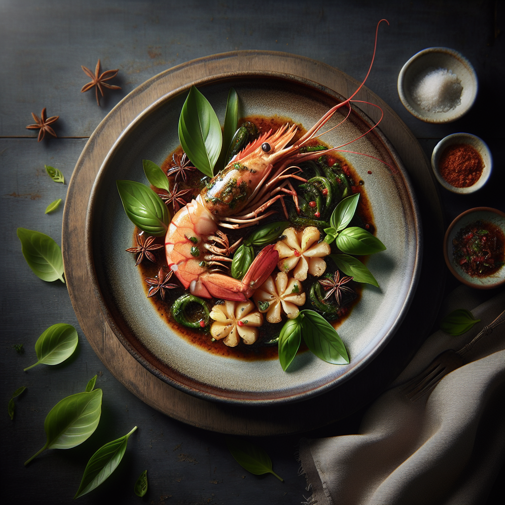 This delightful Thai dish combines the aromatic flavors of lemongrass and star anise to create a halal prawn recipe that is both exotic and comforting. Thai basil adds a unique herbal note that complements the sweetness of coconut and guava chutney. The prawns are cooked to perfection, retaining their juicy texture and absorbing the rich, fragrant spices. This dish is a beautiful blend of sweet, savory, and spicy flavors, making it a favorite among seafood lovers. Enjoyed as a main course, it showcases the vibrant and diverse ingredients typical of Thai cuisine, bringing a taste of Thailand to your table. Perfect for family gatherings or special occasions, it offers a taste of the tropics in every bite.