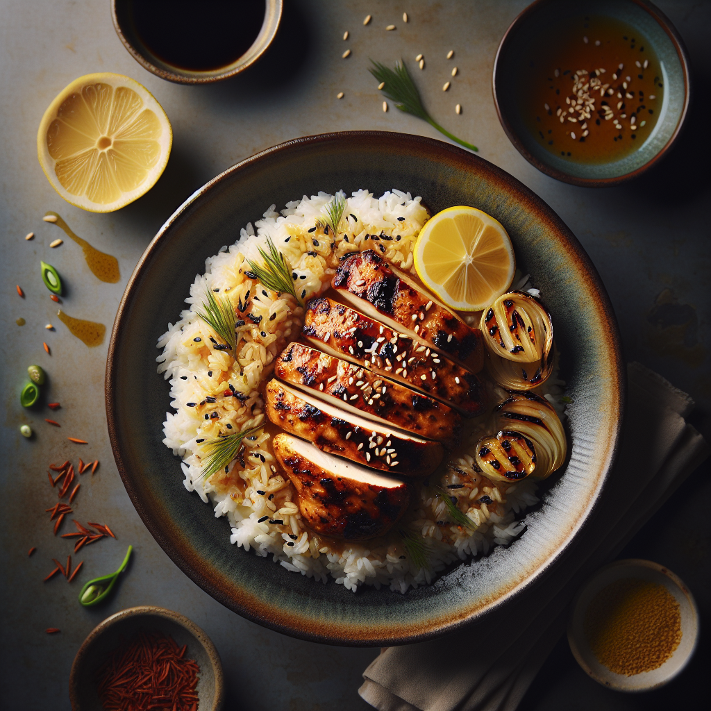 Miso Ginger Grilled Chicken with Sesame Scallion Rice is a delightful combination of savory and aromatic flavors, inspired by Japanese cuisine. The chicken is marinated in a blend of miso paste, fresh ginger, soy sauce, and a hint of honey, creating a deep umami taste that is both comforting and satisfying. Grilled to perfection, the chicken pairs beautifully with the fragrant sesame scallion rice, which adds a nutty undertone and a touch of freshness from the scallions. This dish is loved for its balance of flavors and textures, making it a popular choice for lunch. It’s a wholesome meal that is not only delicious but also visually appealing, perfect for family gatherings or a special lunch treat.
