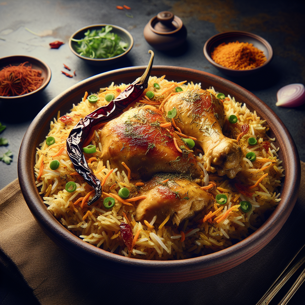 Murgh Jashn-e-Gulistan Biryani is a celebration of flavors hailing from Pakistan, known for its rich and aromatic taste. This dish combines succulent chicken with basmati rice, infused with a medley of spices including cardamom, cumin, and saffron, creating a symphony of flavors that dance on the palate. The addition of rose water and fried onions gives it a floral and slightly sweet undertone, enhancing the overall flavor profile. This biryani is loved for its colorful presentation and the perfect balance of spices that offer a burst of taste in every bite. It’s often served during special occasions and family gatherings, symbolizing joy and togetherness, and is enjoyed by people for its inviting aroma and delicious taste.