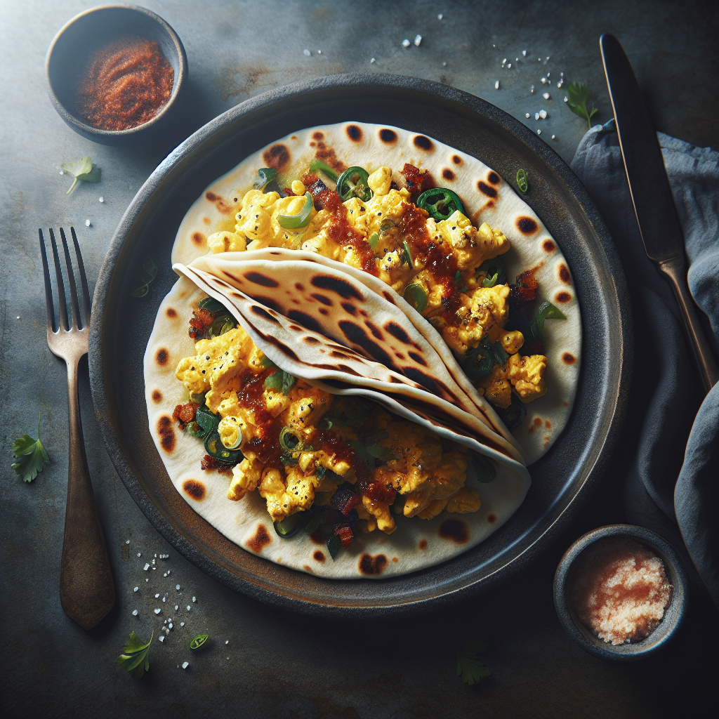 Naan Breakfast Tacos with Harissa Scrambled Eggs