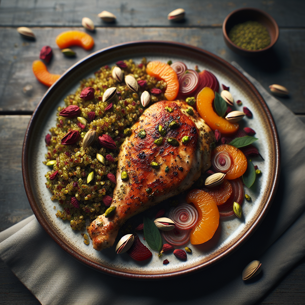 Pistachio-Cinnamon Chicken with Rosewater Apricot Quinoa