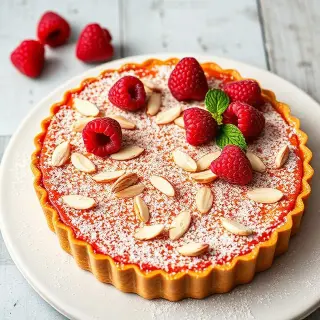 This Raspberry Almond Tart is a delightful balance of sweet and nutty flavors wrapped in a buttery crust. Juicy raspberries provide a bright, tangy contrast to the rich almond filling, creating a dessert that feels both elegant and comforting. Perfect for family gatherings, tea time, or special occasions, this tart offers a beautiful presentation with minimal effort. The combination of simple ingredients results in a harmonious texture, with a crisp base and soft center. Serve it slightly warm or chilled for a treat that pairs wonderfully with coffee or tea while satisfying any sweet craving.
