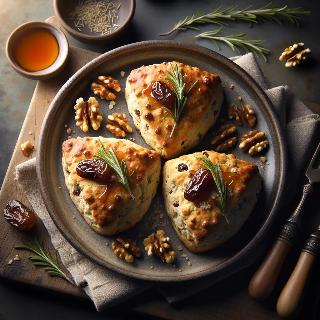 Rosemary-Scented Date and Walnut Breakfast Scones are a delightful fusion of sweet and savory flavors, perfect for a morning treat. These scones are inspired by traditional British recipes but infused with a Mediterranean twist, thanks to the aromatic rosemary and the sweetness of dates. The walnuts add a satisfying crunch, providing a perfect contrast to the soft, buttery texture of the scones. They are beloved for their unique taste profile, which combines the earthiness of rosemary with the natural sweetness of dates. These scones are ideal for breakfast or brunch, offering a wholesome start to the day. The combination of flavors creates a comforting and satisfying experience, making these scones a favorite among those who appreciate a gourmet twist on classic breakfast fare.