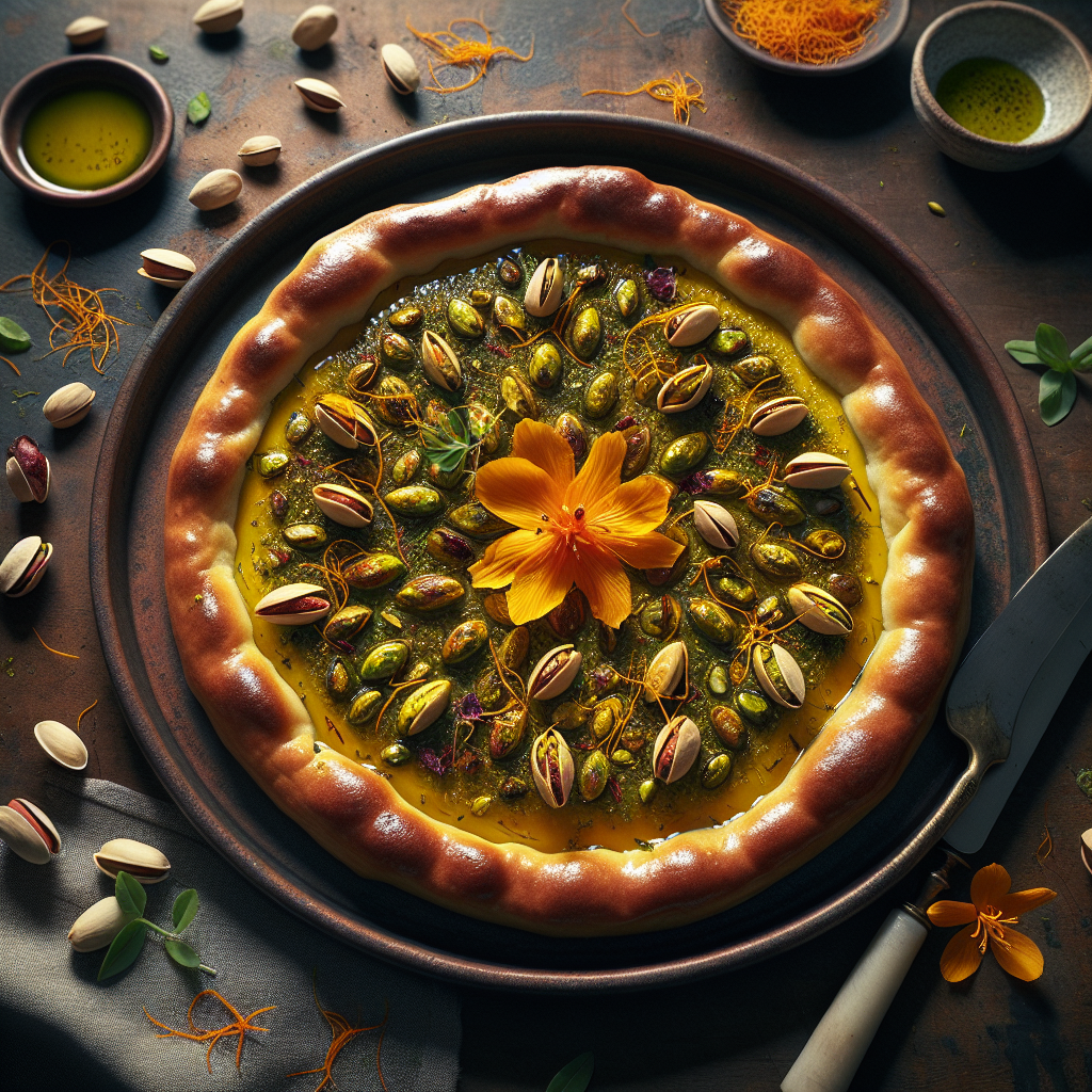 The Saffron-Infused Pistachio and Orange Blossom Breakfast Crostata is an exquisite dish that combines the rich flavors of saffron and nutty pistachios with the delicate aroma of orange blossom. Originating from Mediterranean inspirations, this crostata features a buttery crust that perfectly cradles a creamy, fragrant filling. The subtle sweetness and floral notes make it a delightful morning treat. Loved for its unique blend of textures and flavors, this crostata is both luxurious and comforting. The use of saffron adds a touch of opulence, while pistachios contribute a satisfying crunch. This breakfast dish is not only a feast for the palate but also a visual delight, making it a favorite for special brunches and gatherings.