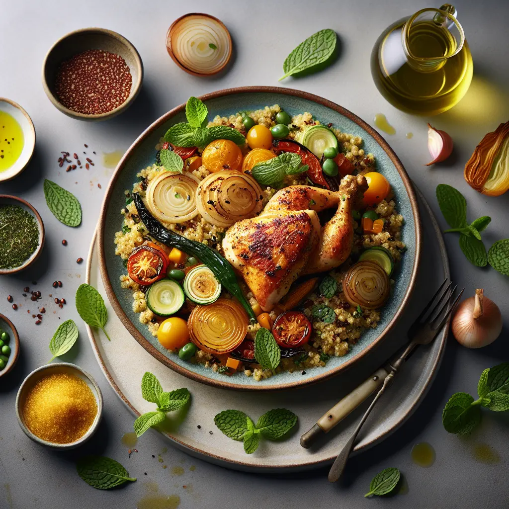 Saffron-Mint Chicken Quinoa is a delightful fusion dish that combines aromatic spices with wholesome ingredients. Originating from the crossroads of Middle Eastern and Mediterranean cuisine, this dish offers a unique blend of flavors. The subtle warmth of saffron pairs beautifully with the refreshing notes of mint, creating a balanced taste profile that is both savory and invigorating. Tender pieces of chicken are complemented by the nutty texture of quinoa, making it a nutritious and satisfying meal. Loved for its vibrant colors and aromatic allure, this dish is perfect for those seeking a healthy yet flavorful dinner option. It’s a popular choice for family gatherings and casual dinners, appreciated for its ease of preparation and rich, complex flavors.